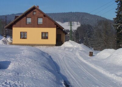 Apartmán je vybaven 2 oddělenými pokoji, koupelnou s podlahovým topením, sprchovým koutem a WC. Kuchyňský kout je vybavený sporákem, ledničkou, mikrovlnkou, rychlovarnou konvicí a nádobím. Dále je k dispozici úschovna lyží a kol. Vstup na sjezdovku je od apartmánu cca 300 metrů. 500 metrů od apartmánu se nachází dětské hřiště a víceúčelové hřiště s umělým povrchem.